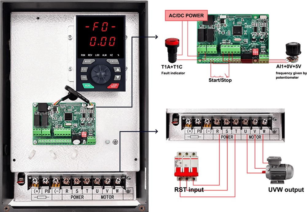 | سیگنال تنظیم فرکانس | پنل عملیات یکپارچه | سوئیچ غشایی (دکمه)، دکمه سرعت (پتانسیومتر) |