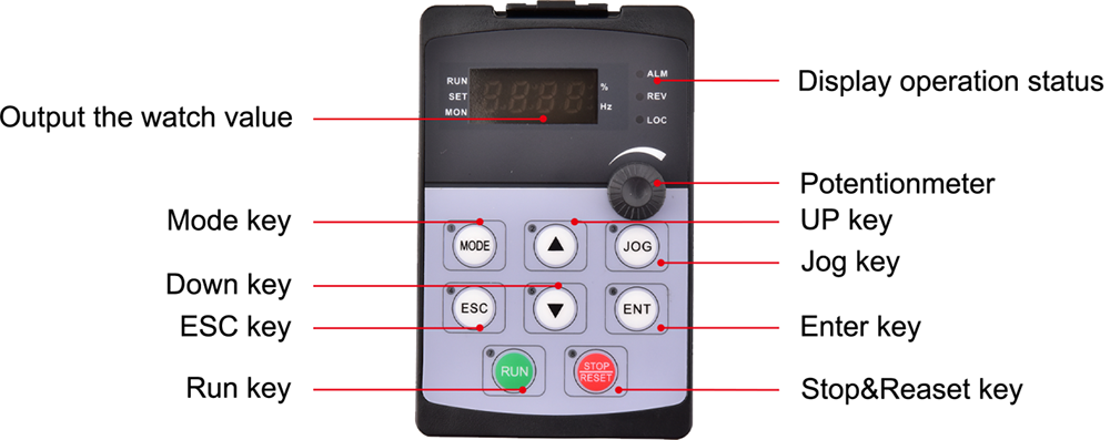 | سیگنال تنظیم فرکانس | پنل عملیات یکپارچه | سوئیچ غشایی (دکمه)، دکمه سرعت (پتانسیومتر) |