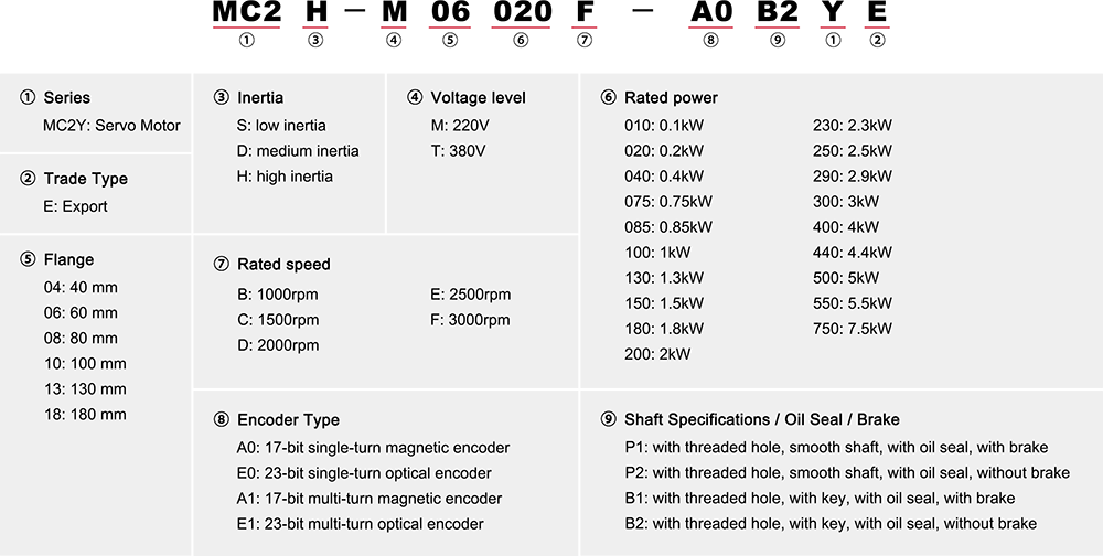 | سروموتورهای سری MC2Y - فلنج 180* | |